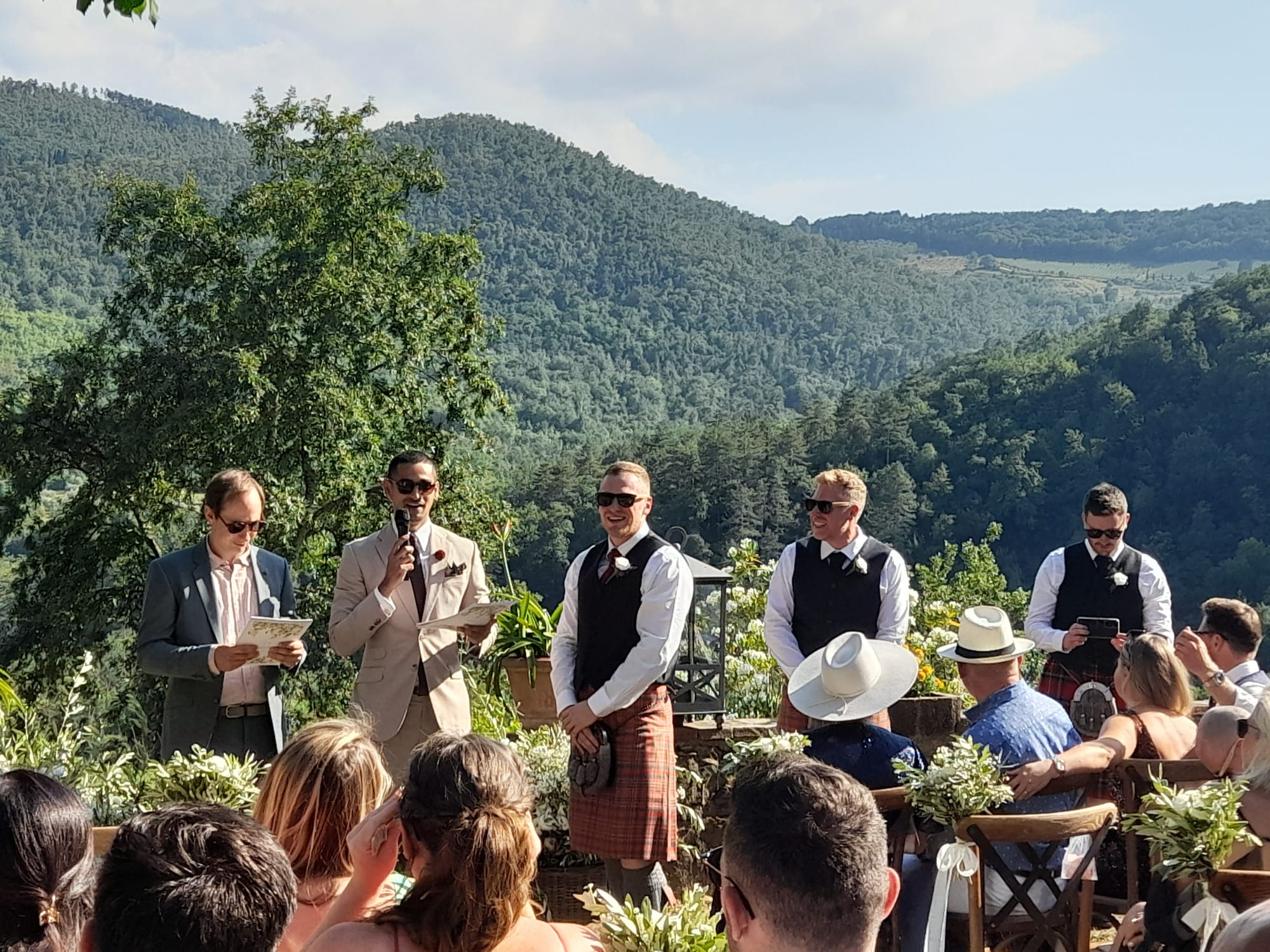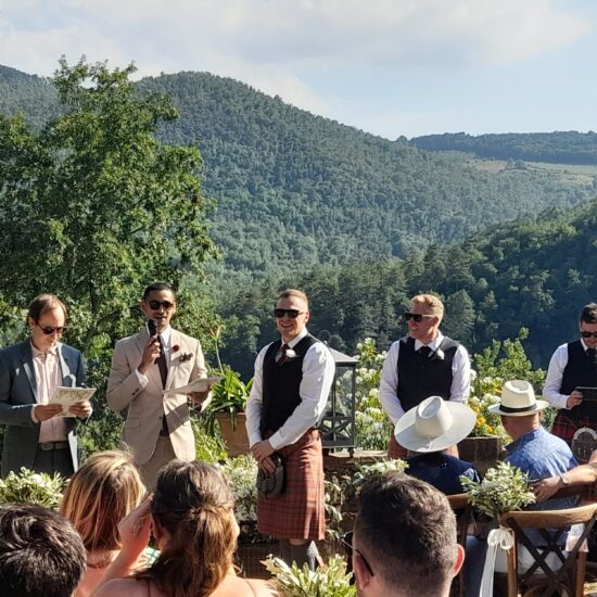 Exclusive wedding planner, catering service, creation of original and refined atmospheres, floral decorations, vintage cars and limousine service, live music, photo and video service, make-up and hairstyle, valet service.