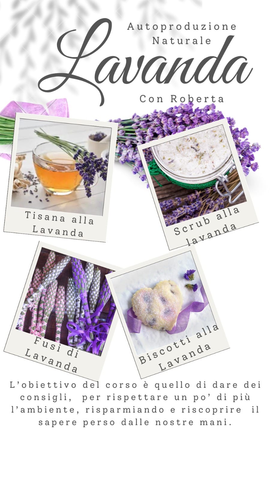 L’obiettivo del corso è quello di dare dei consigli, per rispettare un po’ di più l’ambiente, risparmiando e riscoprire il sapere perso dalle nostre mani.